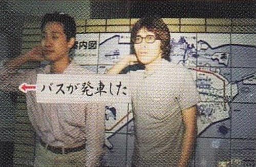 ここで寝汗をたっぷりかいたお二人が、ライトに照れされてトークしてたら、急にバスが発車してビビっているミスターです。違うバスだったんですけどね。でも札幌から北見に帰る都市間高速バスでの話で、途中のトイレ休憩でトイレに行ったら、バスが発車してしまって、取り残されたっていう友人がいました。深夜ではなかったので、バス会社に電話して迎えに来てもらったと言ってました。もう10年以上前の話です。怖いねぇ。同じポーズをとっているのは偶然かな?