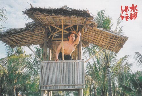 ホイアンのホイアン・ビーチリゾートのプライベートビーチです。おっ!大泉くん!誰か溺れてるぞ!と藤やんが言って「あっ!溺れてる!あそこだーッ!今行くぞーッ!」って言う感じですね。でもこの監視塔は、写真集で確認すると。はしご三段で登れるような低いものでした。