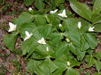 山すそや林の中にひっそりと咲く「シロバナエンレイソウ」です。