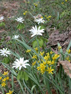 初夏を思わせる陽気に湧別も花盛りです。リラ街道沿いの林を覗いて見るとアズマイチゲとキバナノアマナが仲良く咲いてました。