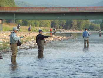 ![]() 生田原町役場裏の生田原川(午前4時30分撮影) 釣り大会なみの賑わいです。 |