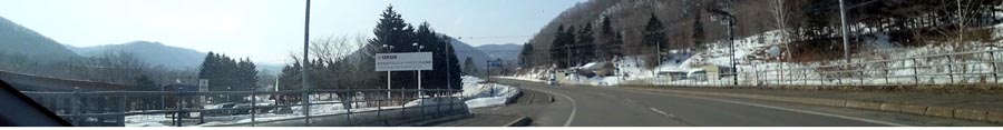 | 国道333号、丸瀬布のYAMAHA楽器工場前から白滝方向。前方左には道の駅の木芸館、 さらに先には旭川紋別道のインター。 |