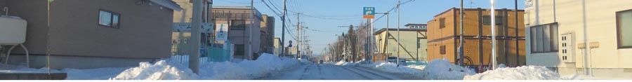 | 末広町の南岸通り、ホンダクリニック前から野付牛自動車学校方向。写真左が無加川の堤防側。 |