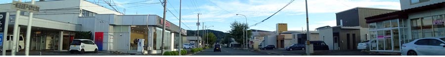 | 西3号線とん田通り、三菱自動車前から国道39号方向。写真奥は無加川橋、写真左が北見駅側。 |