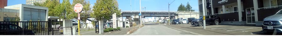 | 春光町の昭和通りを小泉中学校側から国道39号方向。前方はJR石北本線の高架、写真左が北見駅側。写真奥は北見工大。 |