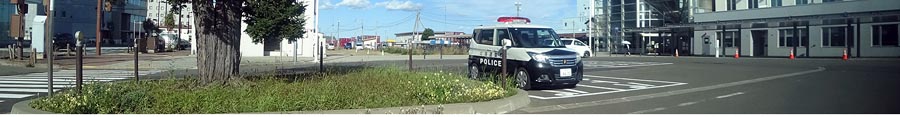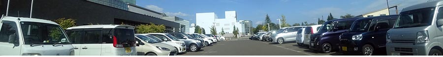 | 中央図書館の駐車場。正面は北見芸文ホール、写真左がJR北見駅側。 |