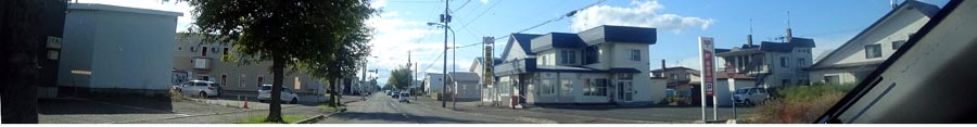 | 若松大橋を渡り、川東の老人ホーム前の交差点。進行方向奥が若松スキー場、前方の交差点を左折で緋牛内・美幌方向。 |