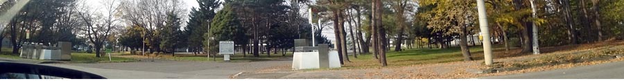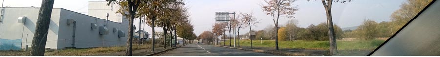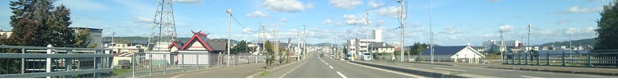 | 野付牛自動車学校前の南岸通りから教習コース側。正面奥は無加川の堤防、写真右奥が北見駅方向。 |