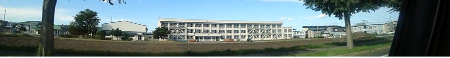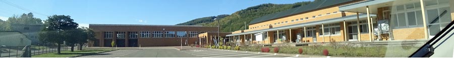 | 置戸小学校。2009年に立て替えられた校舎。写真右が常呂川、写真奥が置戸市街方向。 |