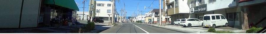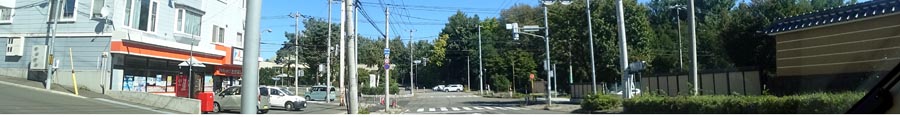 | 常盤町、勤医協北見病院前の通り。前方奥が緑園通り、斜め左奥に西小学校。 |