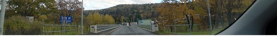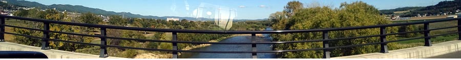 | 常呂川に架かる学友橋。橋を渡り左に置戸小学校、進行方向奥には置戸野球場。写真右が置戸市街。 |