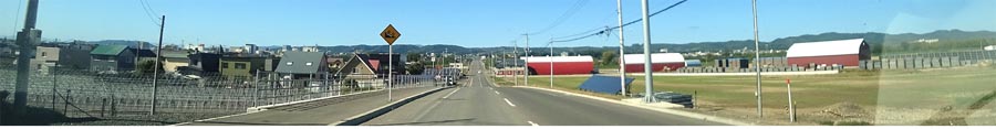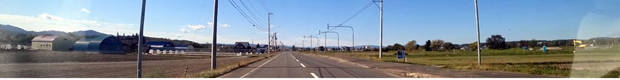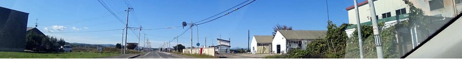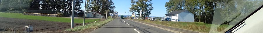 | 道々北見訓子府置戸線を上常呂側から訓子府町日出の交差点方向。写真左が居武士小学校側、写真奥が訓子府市街方向。 |