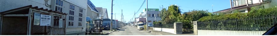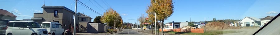 | 常磐通りから北光小学校。正面はひまわりが一面に咲いていましたが、刈り取られたようです。写真奥が市街地方向。 |