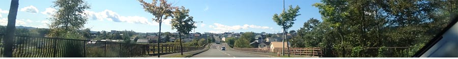 | 青葉通りから南大通りを横切り、香りゃんせ公園の上を通る見晴大橋。進行方向奥は川東、写真左が下流側。 |