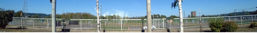 | 常呂川に架かる見晴橋から下流、河川敷にある香りゃんせ公園。写真左は南大通り、写真奥が端野方向。 |