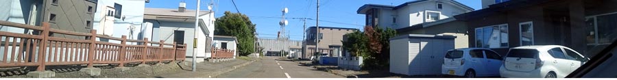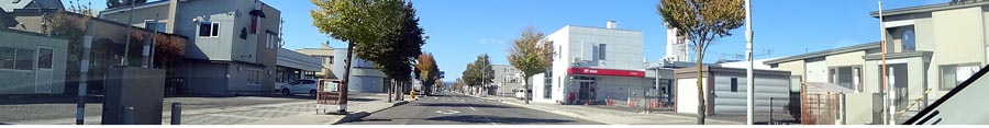 | 野付牛自動車学校前の南岸通りから教習コース側。正面奥は無加川の堤防、写真右奥が北見駅方向。 |
