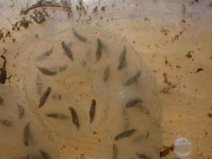 春になると毎年カエルの卵を採って来て、オタマジャクシからカエルになるのを楽しみに見ていましたが、最近はサンショウウオの卵を育てています。今年は4月29日に富武士の山の中から採って来ました。