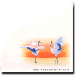 北海道「丹頂鶴と初日の出」・西村昌実 画