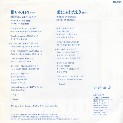財津和夫さんの曲ですが、原みどりさんという歌手とデュエットしていますね。作詞作曲は呉田軽穂さん、女優のグレタ・ガルボをもじった松任谷由美のペンネームですね。ですから聞くと財津さんっぽくないんですね。ユーミンっぽい。そりゃぁそうだよね。