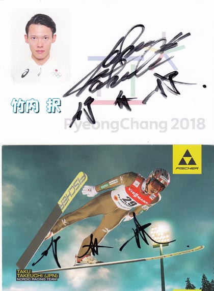 実の独特なサインを書きますね。よくみると竹内択と書いていますが、パッと見では山が3つあるように見えます。スイスの山々がぁ?のね。ヘアスタイルも素晴らしくかっこいい。