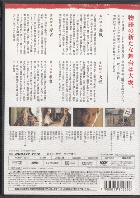 これはヤフオクで確か100円未満で買ったレンタル落ちDVD。Unextで見てたんだけど、出演者の不祥事があって放送されなくなって、困ったなぁって思ってDVDを買おうとしたら高くて、ヤフオクで見つけた安いやつ。んで、見たらなんかUnextで復活してもういらないかなぁって。まぁレンタル落ちだからねもつかないしね。ここら辺は堺さんが下っ端のころで大変面白い。秀吉の小日向さんがいいねぇ。