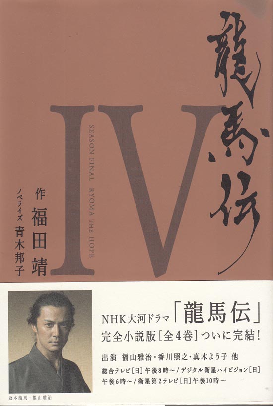 完結編ですね。坂本龍馬さんって後半がすごいことになっているでしょう?いろは丸事件で紀州藩から多額の賠償金をとったこととか、大政奉還とか、まぁドラマですからいいんですけど。最後は壮絶ですし。実際の坂本龍馬さんはもう少しのっぺりした感じですけど、イメージは福山さんだよなぁ。かっこいいですねぇ。「あぁ洋ちゃん?今どこ?ダブリン?」なんて言ってくれるんでしょうかね?あはは。あ、すべてブックオフ。当時は110円くらいでした。108円かな?
