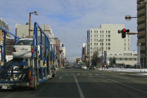午前9時40分、常盤通り、常盤橋から北見市民会館方向