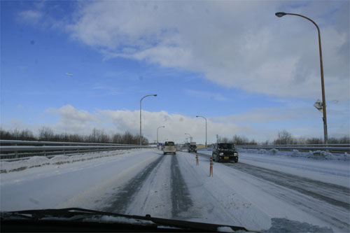 午前9時40分、常盤通り、常盤橋から北見市民会館方向