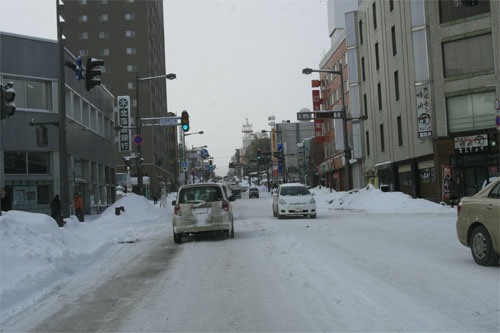 午後1時半、中央通りの北1条通り交差点から北4条通り方向
