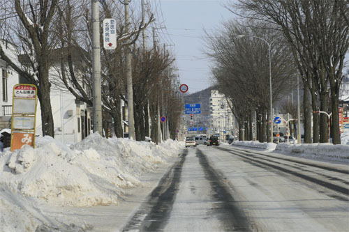 午後2時、南大通り、とん田東町バス停前から緑園通り方向