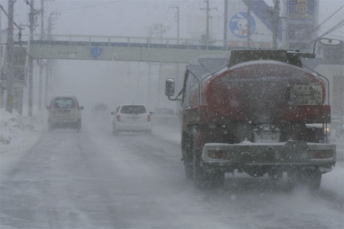 午後2時過ぎ、国道39号、とん田通り交差点手前から三輪方向