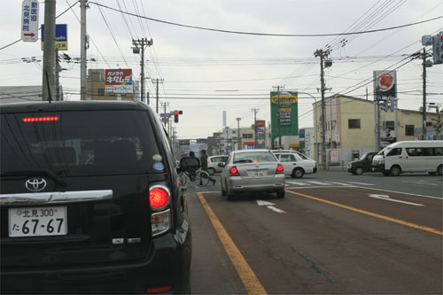 とん田通り、南大通り交差点側から北見中央病院方向