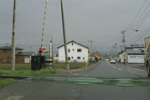 午後3時半過ぎ、西10号線、卸町の北見卸売市場前からJR石北本線の踏切方向