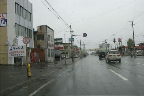 国道39号、移転した「こがねちゃん大通り東店」前から大町方向