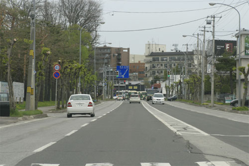 午前9時40分、常盤通り、常盤橋から北見市民会館方向