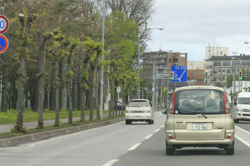 午前9時40分、常盤通り、常盤橋から北見市民会館方向