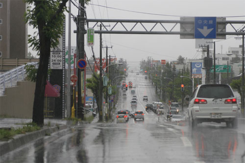 午後3時半過ぎ、イオン横の夕陽ヶ丘通りを道立北見病院方向へ