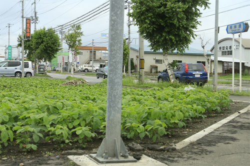 交差点横の豆畑