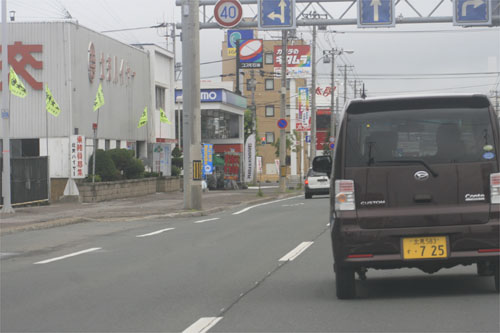 とん田通り、南大通り交差点を過ぎて北見中央病院方向