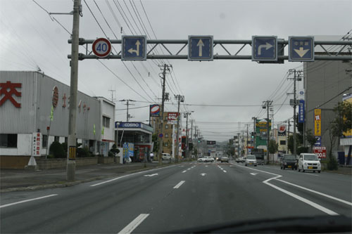 とん田通り、南大通り交差点を過ぎて北見中央病院方向