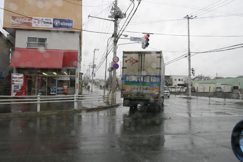 国道39号、大町のムラカミ薬局前、東5号線交差点