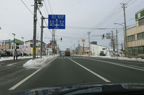 午前8時過ぎ、国道39号、北見トヨペット前からとん田通り方向