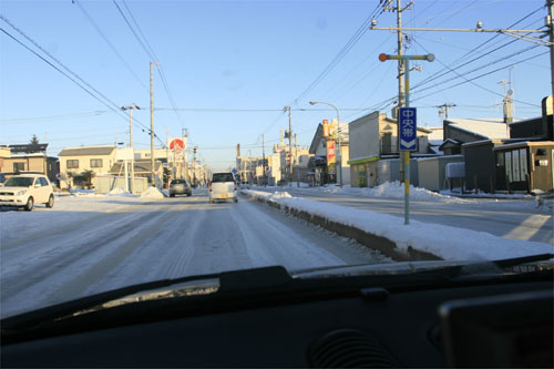 とん田通り、野付牛自動車学校前バス停から無加川橋