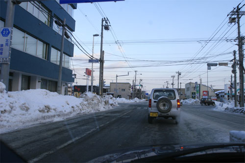 とん田通り、野付牛自動車学校前バス停から無加川橋