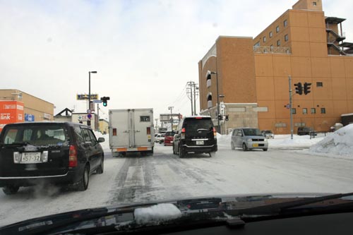 午前9時30分、国道39号、大通り西4丁目通り交差点から北見駅方向
