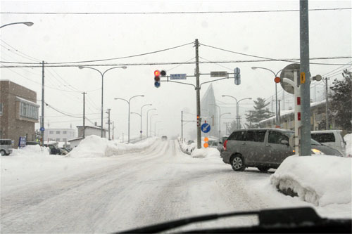 午後3時過ぎ、とん田西町の南大通り、西4号線、玉越病院前の交差点