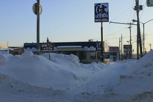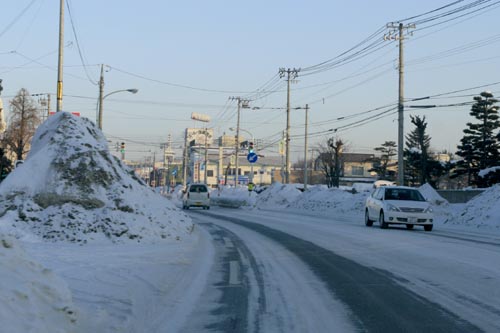 とん田通り、野付牛自動車学校前バス停から無加川橋