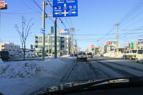 午前8時過ぎ、国道39号、北見トヨペット前からとん田通り方向