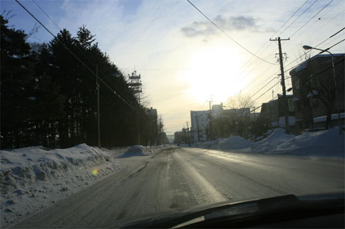 中央通り、北見北斗高校正門前