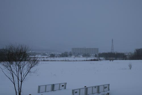 午後4時半過ぎ、東4号線、川東の堤防の上から常呂川を挟んで国道39号方向